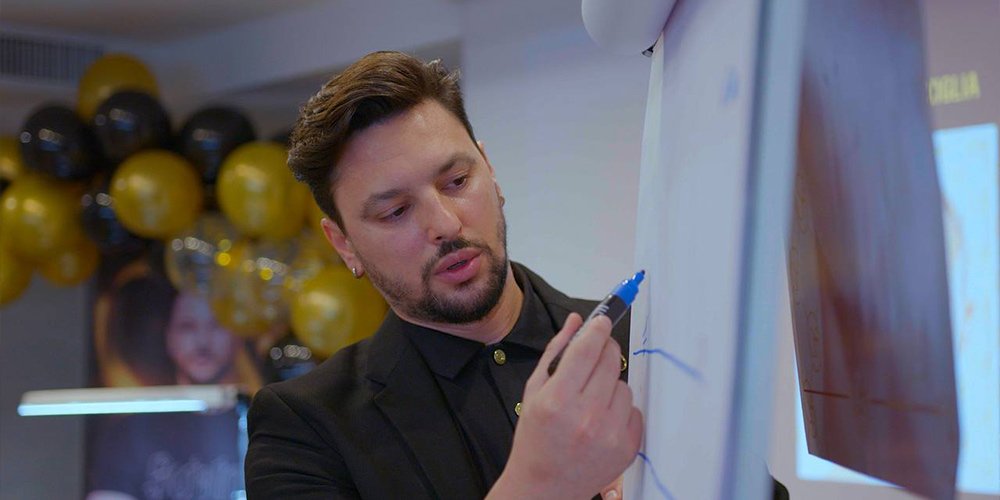 Poi i tentativi sulla pelle sintetica, sulla modella, e quella inedita sensazione data dal tuo tratto che, finalmente, non è più un semplice esperimento su carta. È reale, lo vedi lì: sull’arcata della modella.